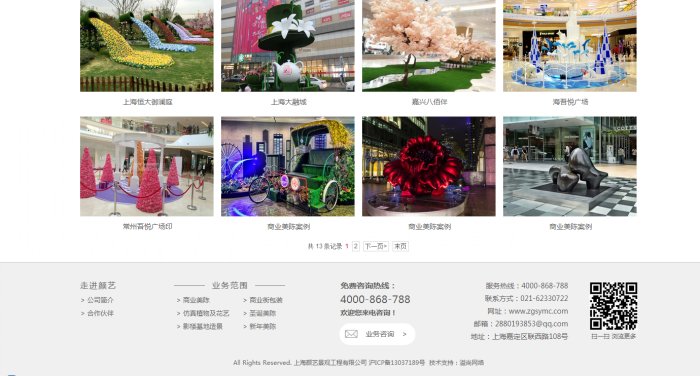 上海顏藝景觀工程有限公司一直遵循以誠為本、客戶至上的服務(wù)原則,憑借精英伙伴,始終秉承“創(chuàng)造藝術(shù)的商業(yè)空間”的服務(wù)理念,為客戶裝點良好的空間氛圍。同時通過對項目預(yù)算、設(shè)計進度的嫻熟把握、最新技術(shù)的運用和設(shè)計水準(zhǔn)的不斷超越,完成向客戶提供具有卓越品質(zhì)和成本效益優(yōu)化的設(shè)計作品。上海顏藝景觀工程有限公司以創(chuàng)新為動力,視經(jīng)驗如財富,客戶遍及全國各省、自治區(qū)、直轄市。十七年來成功完成多個大型工程項目,有紅星美凱龍、福州大洋晶典、上海湯臣一品、月星家居、上海新世界、上海恒隆廣場、仲盛世界商場、寶萊百貨、中糧集團、綠地集團、萬達(dá)集團、聯(lián)盛集團、上海世博會......公司設(shè)計師有著十多年的美陳裝飾設(shè)計經(jīng)驗及后期配置、現(xiàn)場布置工作經(jīng)驗,公司擁有自己的工廠后盾支持。我們?yōu)榛垩郦毦叩哪W(wǎng)羅每一種美,將文化及品質(zhì)和諧完美地融為一體。我們珍惜客戶給予的每一次機會,努力創(chuàng)造著人與環(huán)境完美結(jié)合的美景。